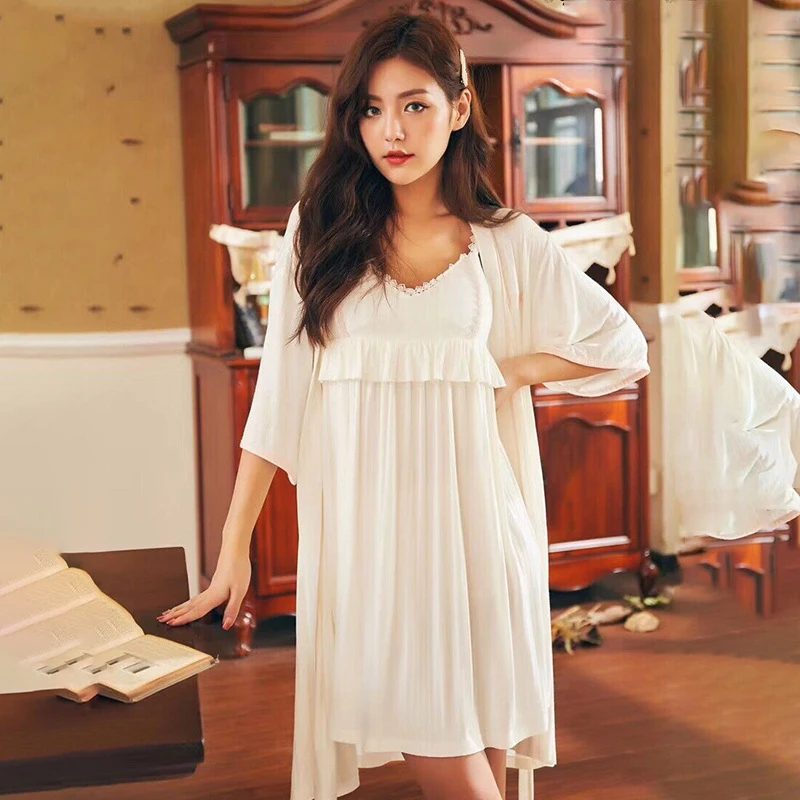 Best Offer of robes set Night Sleep Dress Nighties for Women sleepwear Underwear Lingerie Sling Lace cotton Sexy