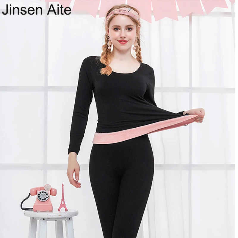 .image of Jinsen Aite 2018 Winter Thicken Fleece Keep Warm Women's Long Johns Slimming Body Super Soft Ladies