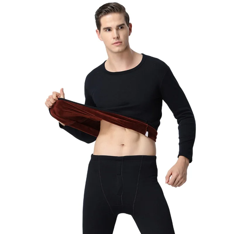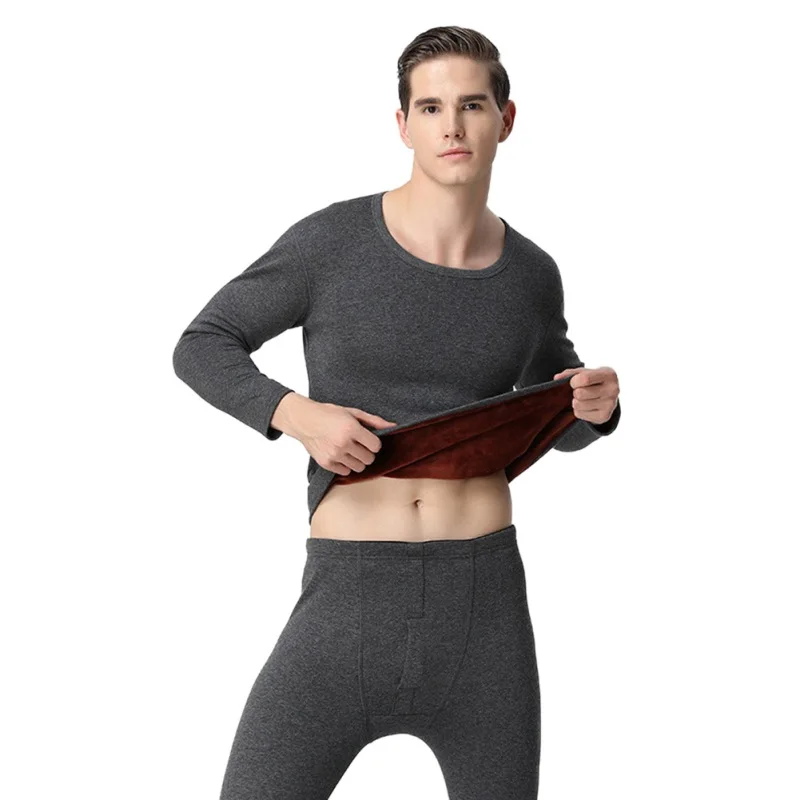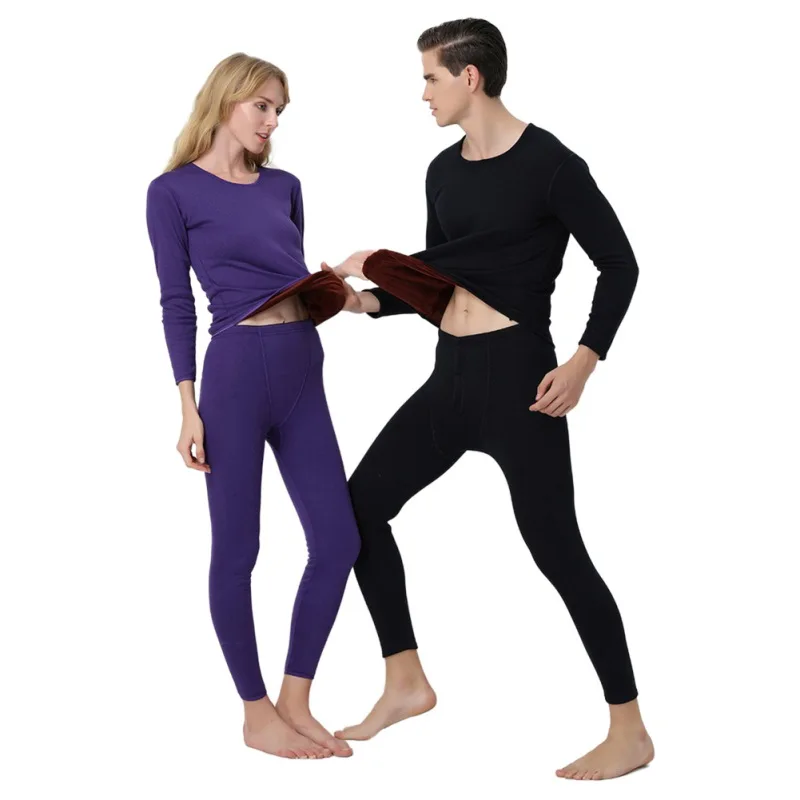 Special Price for Women Men Solid Shirt / Bottoms Thicken Thermal Underwear Set for Autumn Winter Fleece Lined Crew N