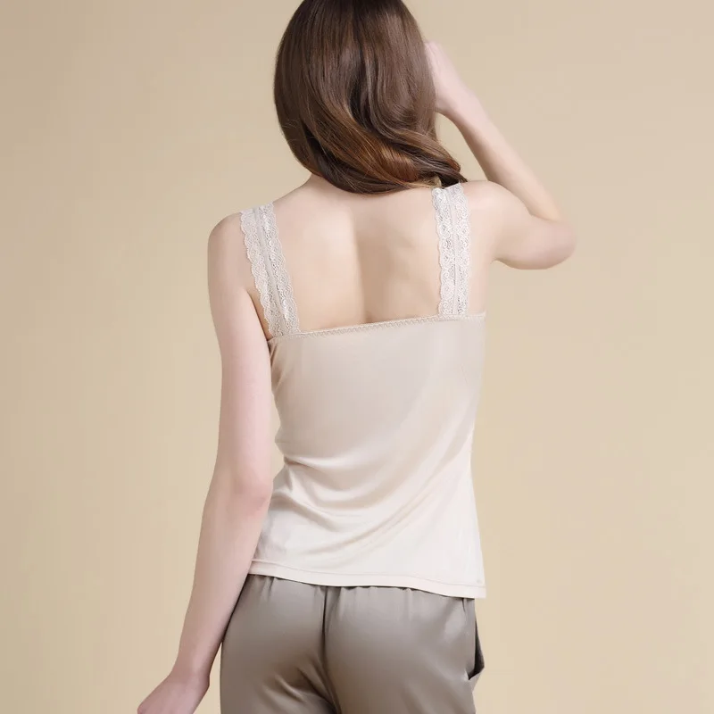 Related Product for 100% Silk Knitted Lace Camisole Women Comfortable Silk Tank Top Women Underwear Plain Color Lace St