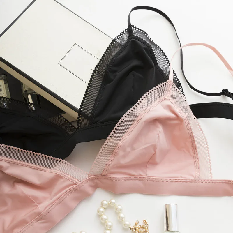 Related Product for Nature Silk Pink Lace Bra Female Sexy Slim No Rims French Style Ultrathin Small Chest Bra Romantic