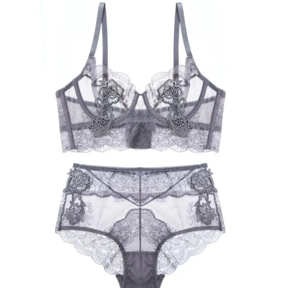 Related Product for Irene Tinnie New Sexy Charming Mature Ultra-Thin Lace Rose Bra Set Lingerie Women Gathered Bra Inti